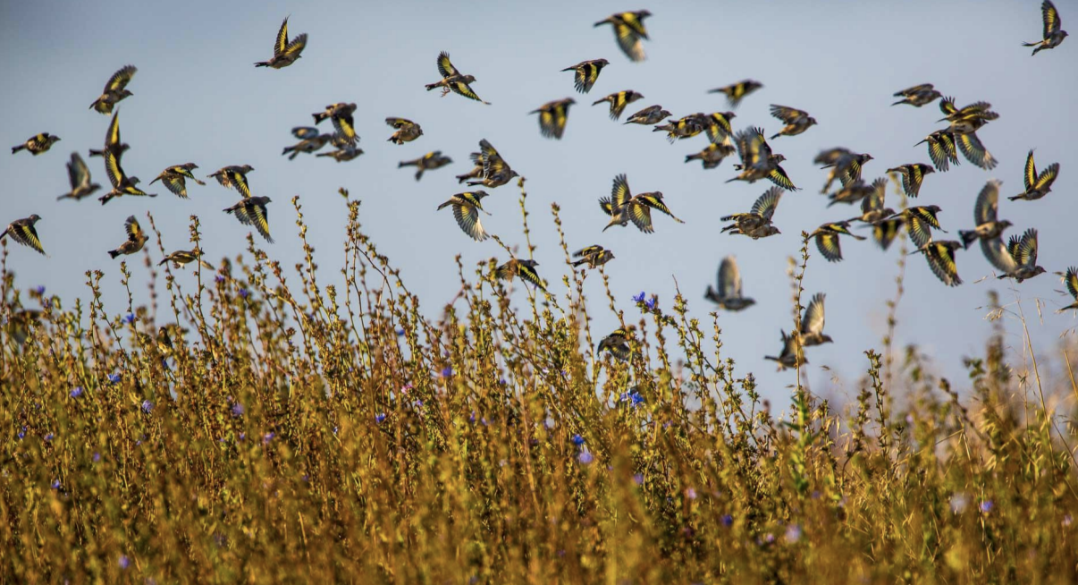 Large flocks of goldfinches and linnets winter on our farm feeding on the mustard, quinoa, kale, fodder radish, chicory and cereal crops. These then attract merlin, red kites, sparrowhawks, hen harriers and short-eared owls.