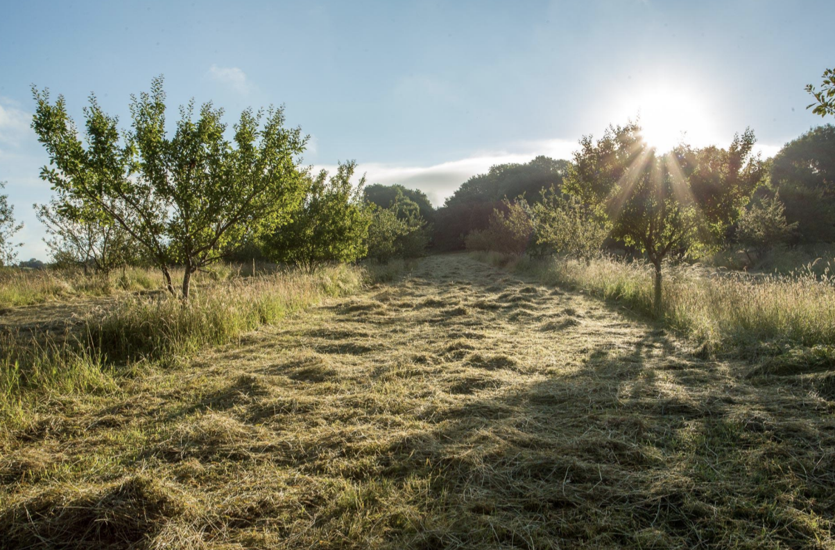 The orchard is both for grazing and hay making as well as a crop of apples for juicing and food for several bee hives.