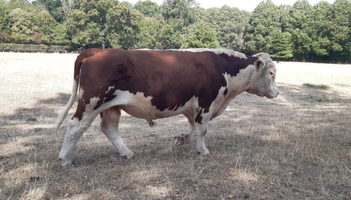 Young British Polled Bull with unique genetics bred from historic semen. Expressing traits for highly fleshed carcass and ability to outwinter whilst maintaining good fat cover. Now 29 months old and ready to work in 2026 (or light duties sooner).