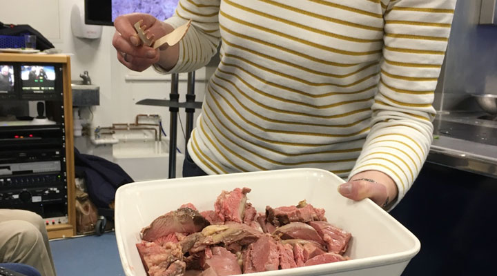 The results were ‘extraordinary’ said Chris on tasting each of the samples as he cut the loins up into small pieces for everyone to try.