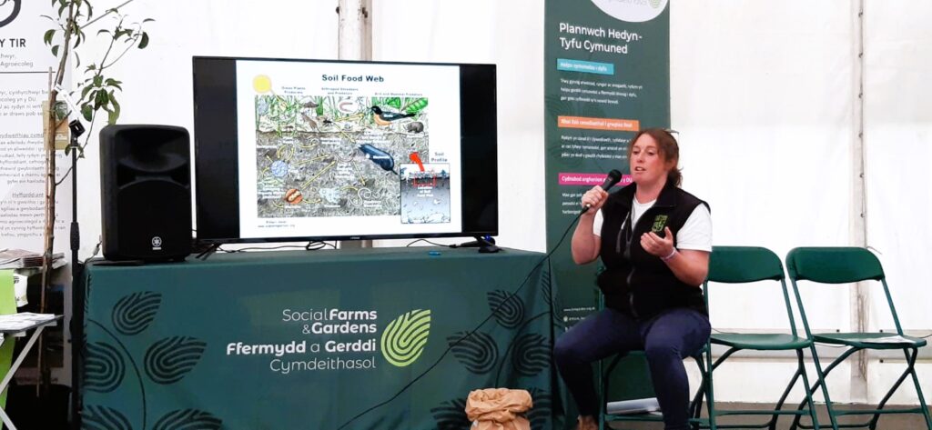 We were very fortunate to be offered a space within a new Community + Food + Agroecology marquee at the Royal Welsh Show this year. It’s the first time PfL has had a presence at this prestigious event and it was great to have the opportunity to be in a space with organisations such as Social Farms & Gardens LWA, Open Food Network, GRFFN, WRFFC and Food Sense Wales. There were lots of talks and workshops held in the marquee including Emma talking about Meadow Management and NFFN launching their new report highlighting how nature friendly farming also makes financial sense. It was lovely to welcome PfL members and friends to the stand as well as speak to people that had never heard of PfL before.
