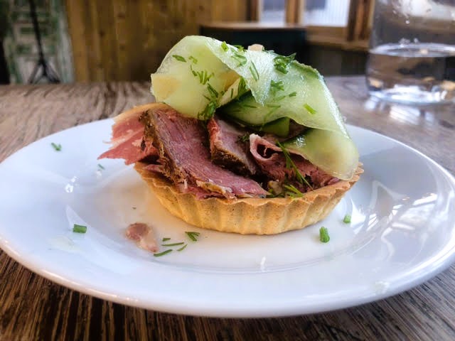 We were treated to exceptional food, cooked by their chef Nat Tallent. She spoke to us about trying to find ways to use the whole carcass which the gardens visitors would appreciate and then she served up, among other dishes, a tartlet of goats cheese and hogget shoulder cured like ham – delicious.