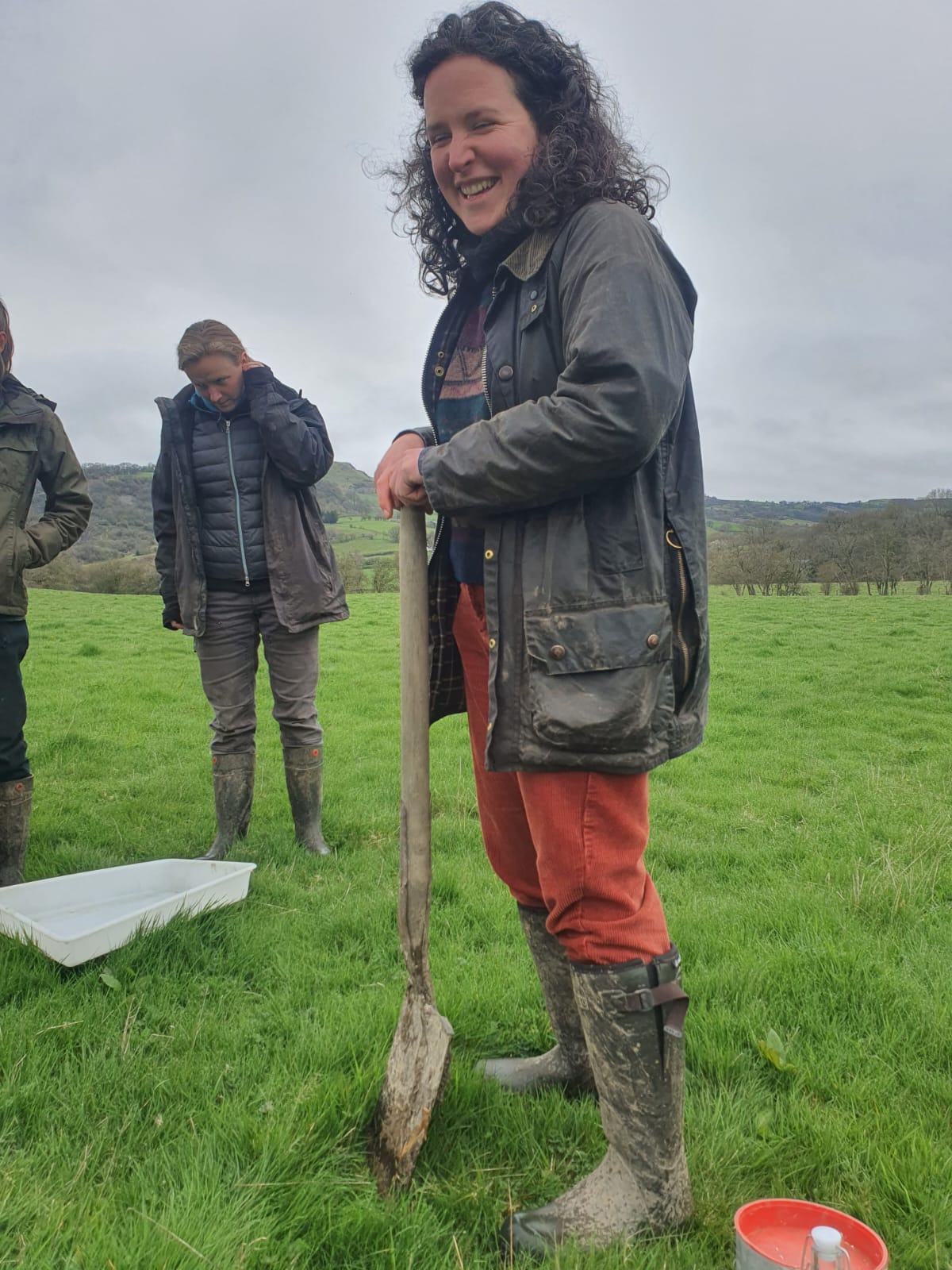 We were in mid Wales, looking at some lovely soils near the River Wye, led by our Severn & Wye facilitator Ruth Pullan, who took us through a hands-on session learning some basic methods to evaluate and monitor soil health.